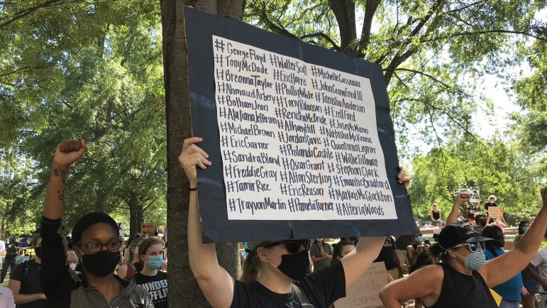 Jackie Freeman, who traveled from Tuscumbia, Ala., for Saturday’s protest and Sunday’s rally, said as an African American mother, some of the police violence against black men captured on video made her think of her two sons. She said she’s thinking more carefully about how she spends her money and how she spends her time.