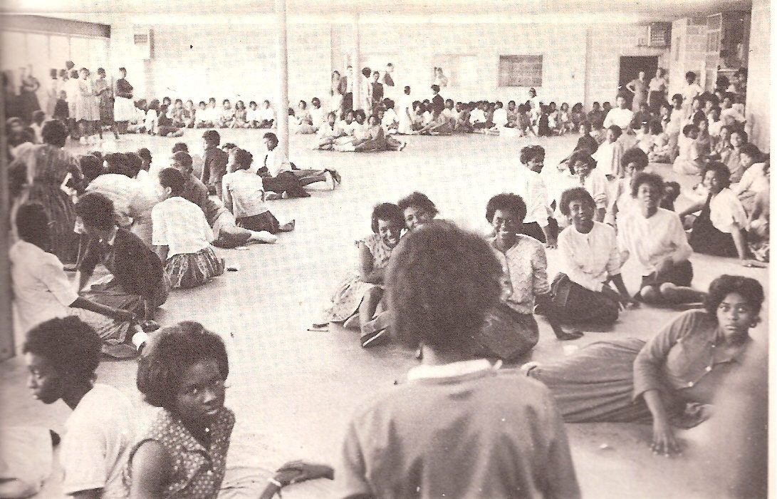 16-year-old Janice Wesley and other protesters inside a makeshift jail at the Alabama State Fairgrounds in 1963.