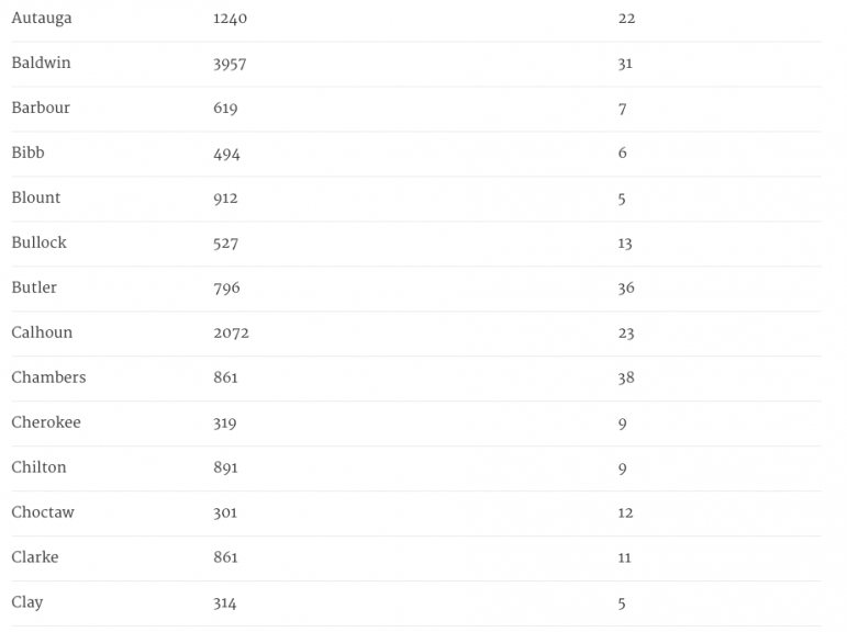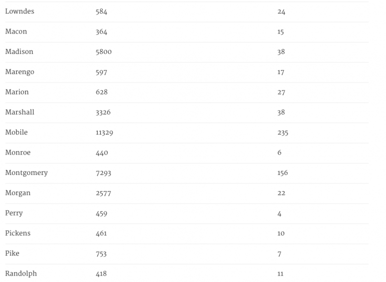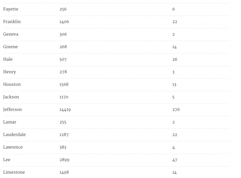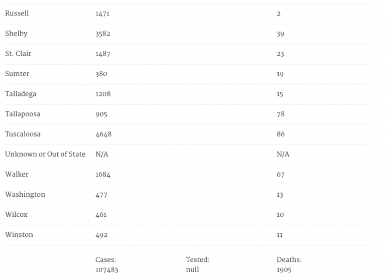 None of the 67 counties had new cases in triple-digits in Thursday’s report. Mobile County reported five deaths to raise its total to 235 and Jefferson County had four deaths for a total of 276 since the pandemic began in mid-March.
