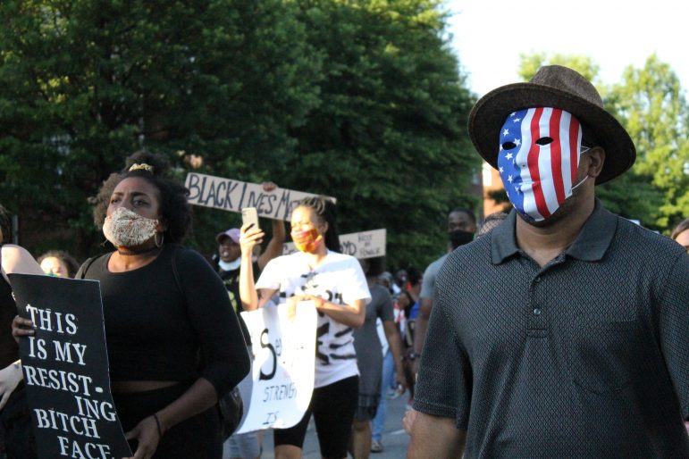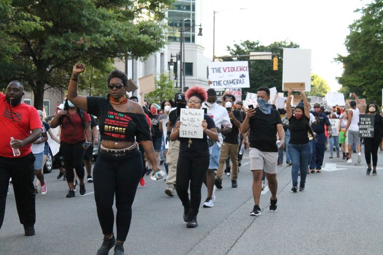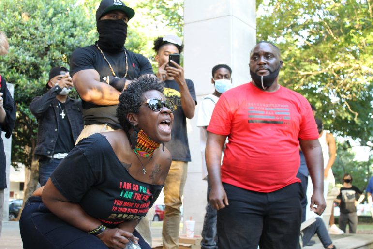 The Birmingham chapter of Black Lives Matter continued the demonstration Saturday night outside Hoover City Hall. They protested the death of Floyd and Birmingham’s Emantic Bradford Jr., who was killed by a police officer in November 2018 at the Hoover Galleria Mall.