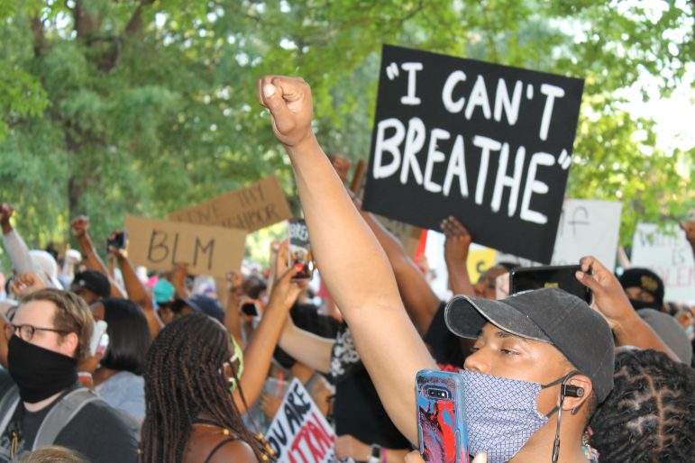 Demonstrators later marched down 20th Street North for more than a mile chanting “I can’t breathe,” which is what Floyd yelled as an officer kneeled on his neck for nearly five minutes.