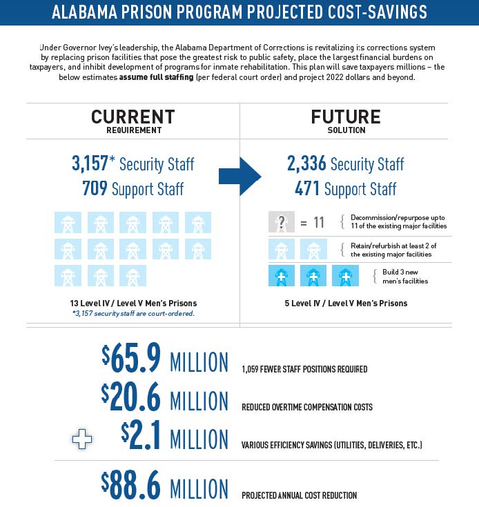 Gov. Ivey and the state’s Department of Corrections Commissioner Jeff Dunn are leading the prison construction project, which does not require legislative approval because it is a build-lease plan.