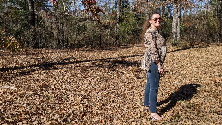 Jackson McNeely stands in the wooded area in Brierfield where she believes state officials want to build a 3,000-person prison.