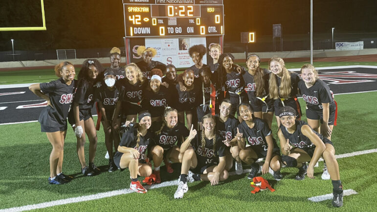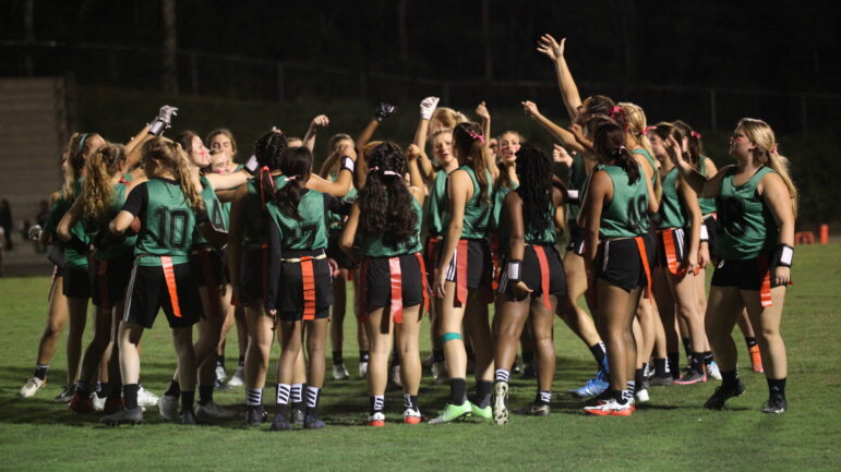 The Lady Cavaliers at John Carroll High School defeat the Spain Park Jaguars during the fall 2021. pilot season of girls flag football in Alabama.