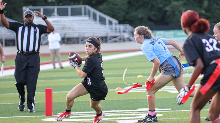 “We have 36 girls on our team and the ones who barely even see the field, the whole game, they are in it,” said Mary Claire Carruth, coach of the Lady Cavaliers at John Carroll. “They’re pumping their other teammates up. They are so eager to play football and to learn about flag football that they just keep it exciting.”