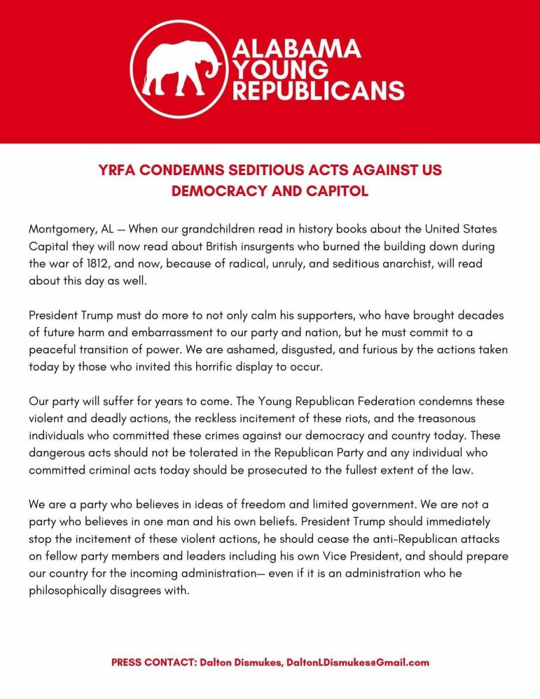 In a recent statement, Alabama Young Democrats and other groups have called for the immediate resignation of Congressman Mo Brooks, Sen. Tommy Tuberville and other state lawmakers citing their lack of leadership during the Capitol attack.