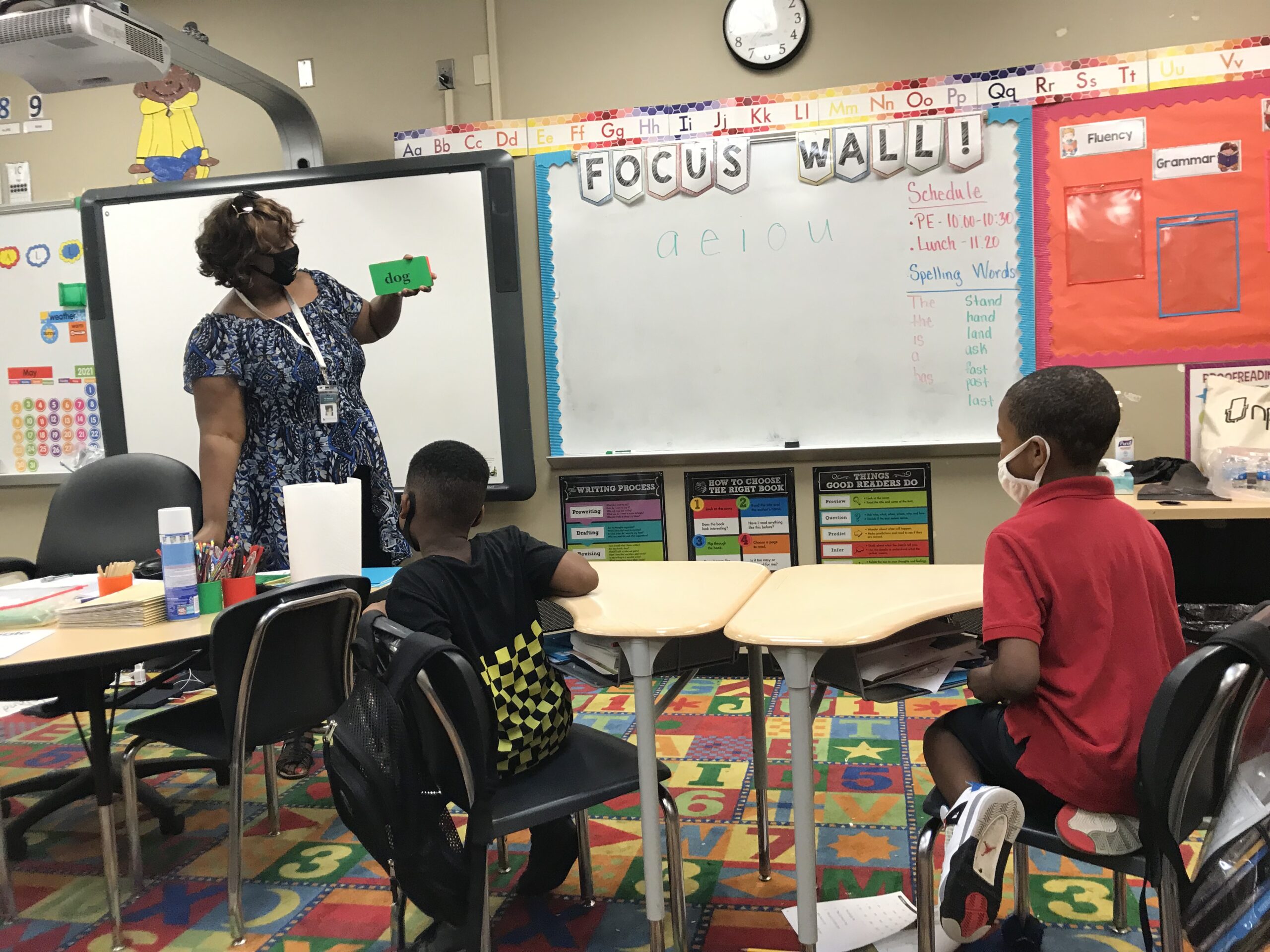 Toi Kimbrough guides her class of rising third graders as they practice reading sight words.