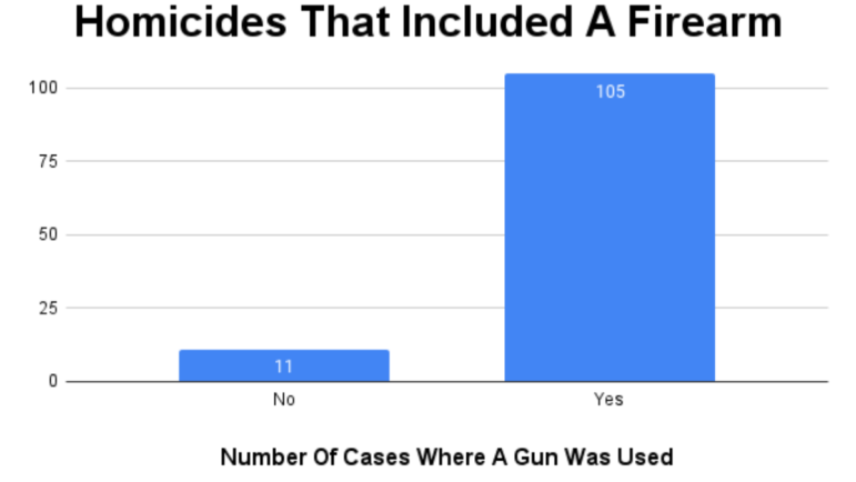 Also, a firearm was used in roughly 91% of all homicide cases in 2021.
