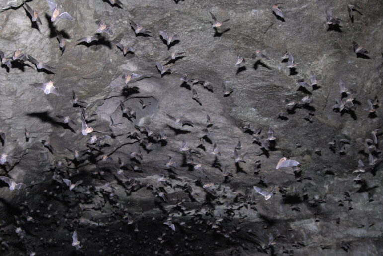 Soon after sunset, they looked up to the sky as bats began filtering out of the cave’s gated entrance.