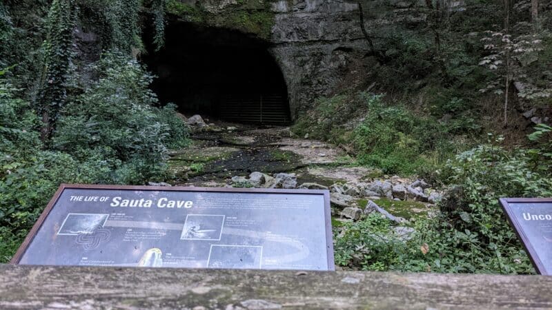 Sauta Cave is particularly popular, with its large opening and location adjacent to the Tennessee River. It draws hundreds of thousands of bats, who spend their summers roosting inside, clinging to the walls and ceiling.