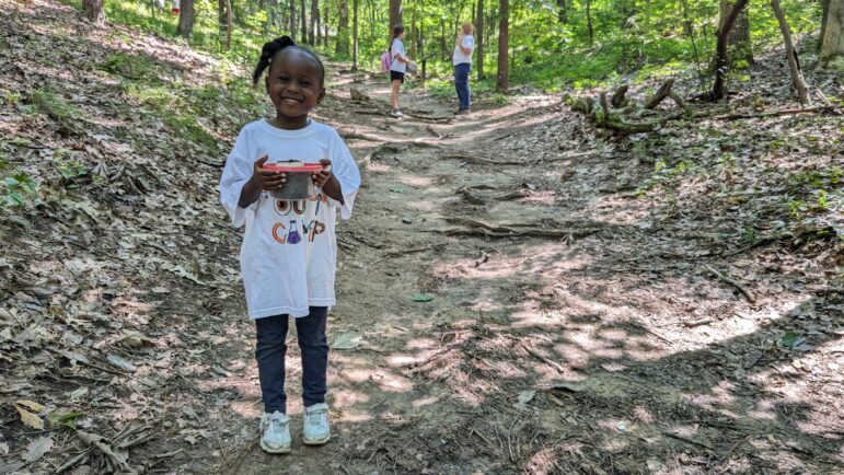 While a forest school is less academically focused in a traditional sense, Crim said students soak up knowledge from every activity. The class might discover a turtle walking along the forest floor at the Kreher Preserve, where the school is located. That presents an opportunity for students to talk about the animal’s shape and color, and write about their discovery.