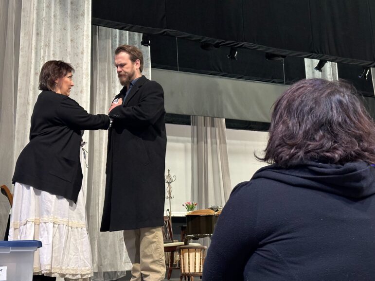 During a rehearsal, Widzer directs a scene in which Keller’s mom is torn between accepting her and respecting her husband as they differ over how to care for their daughter.