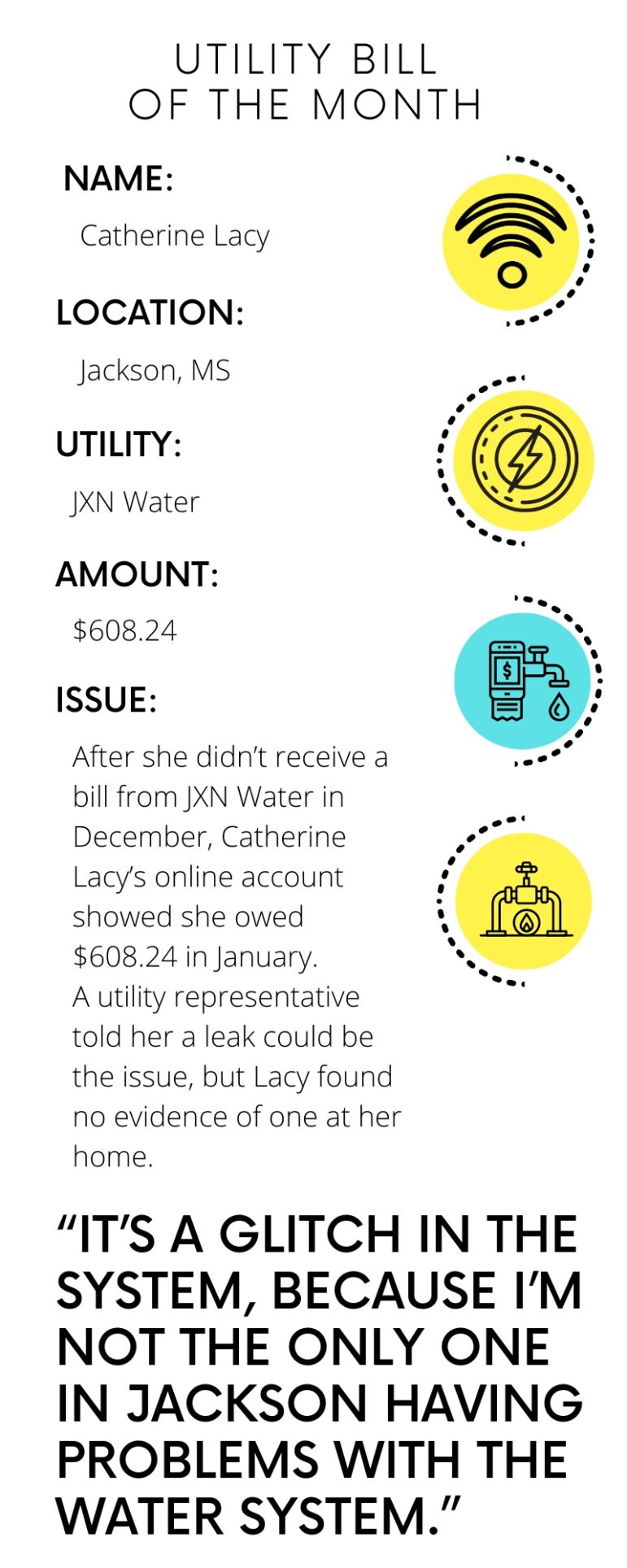 Lacy’s mistrust of Jackson’s water provider’s system is shared throughout the city, where residents have dealt with boil water notices for decades — for some, their entire lives — on top of a decade of billing issues.