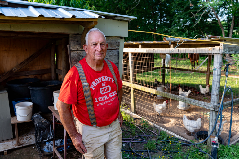 Emerson, feeding his chickens as the McClungs approach, explains the obvious.