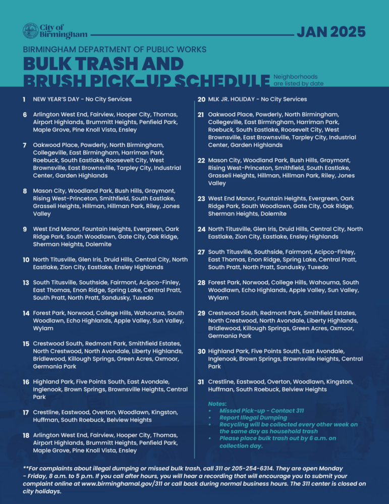Birmingham’s new trash, recycling and bulk waste collection schedule kicks off on Monday, January 6.
