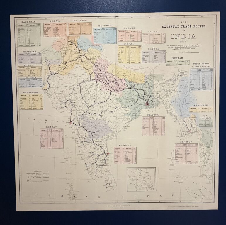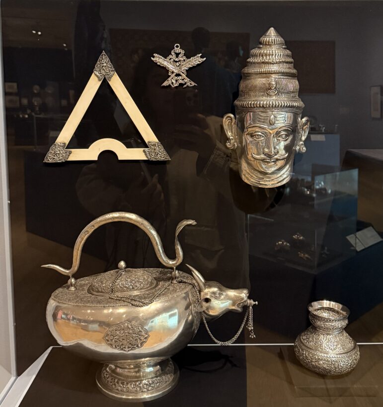 Beyond practical vessels, the silver tells the story of India’s colonization by Europe. Trade maps are displayed across from extravagant trophies, punch bowls and artifacts from India’s railroad system — a development that allowed for efficient global trade.