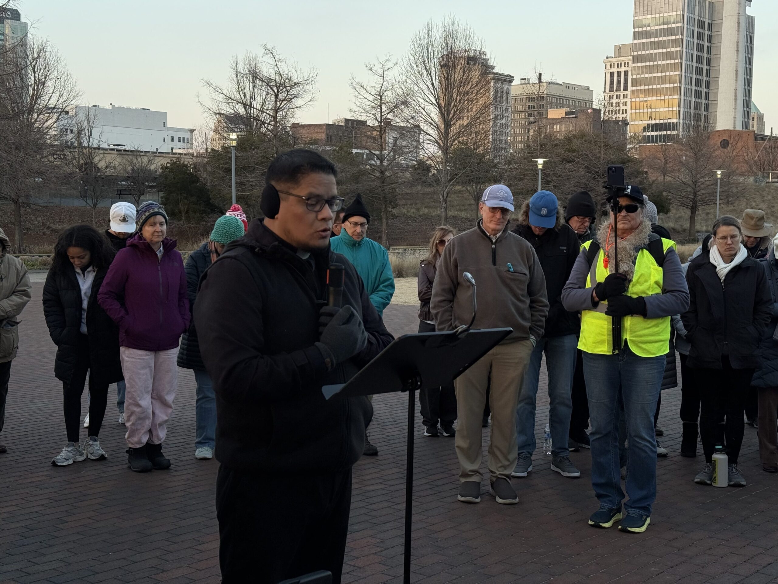 Members of the public along with faith leaders gathered in Railroad Park in Birmingham on Friday, Jan. 30, 2026, for a vigil in response to actions by federal immigration agents in Minnesota.