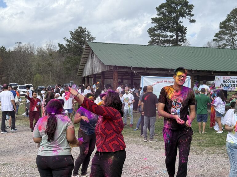 Colored powder filled the air at Veterans Park in Hoover on Saturday. Crowds gathered to celebrate Holi, the Hindu festival of spring, usually identified by the throwing of colors.