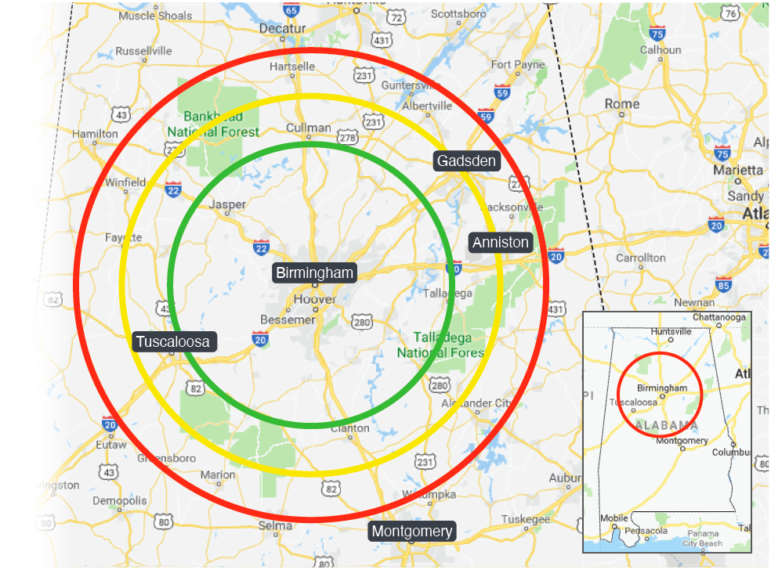 Birmingham metro population reached each week
